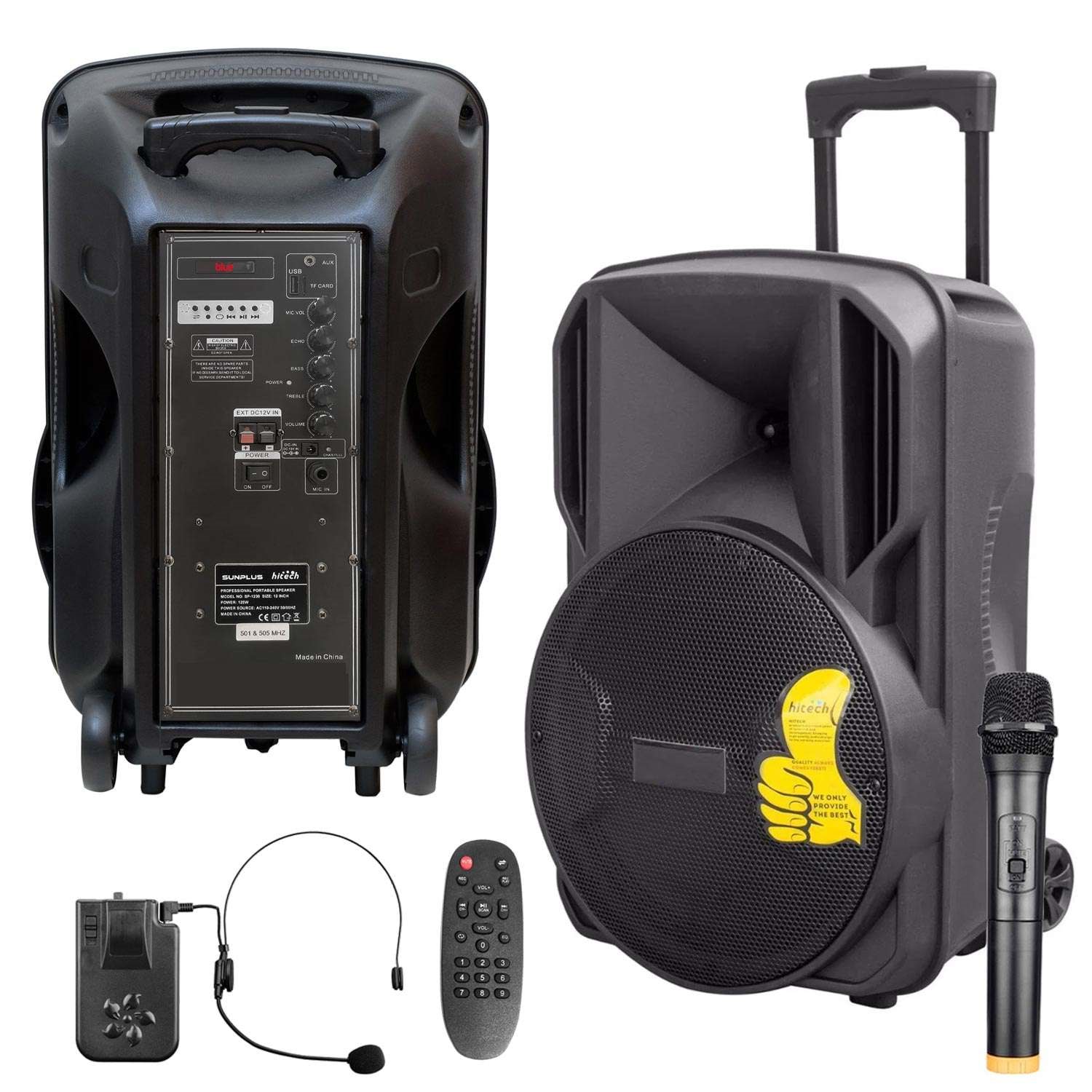 SUNPLUS* SP-1230 AKTİF SEYYAR ANFİ UHF 1 EL 1 YAKA 30CM 300W BT/USB/SD/AUX/MIC